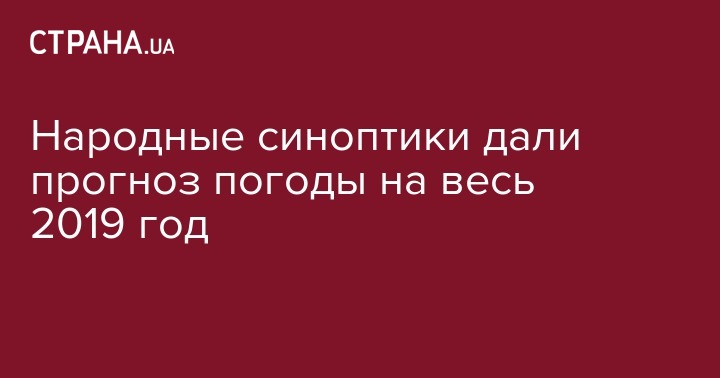 В начале 2019 года народные синоптики дали прогноз погоды в Украине на ближайшие 12 месяцев. В отличие от профессиональных прогнозов, этот может быть неточным и довольно расплывчатым, однако дает понять, к чему готовиться украинцам. Об этом пишут "Вести"