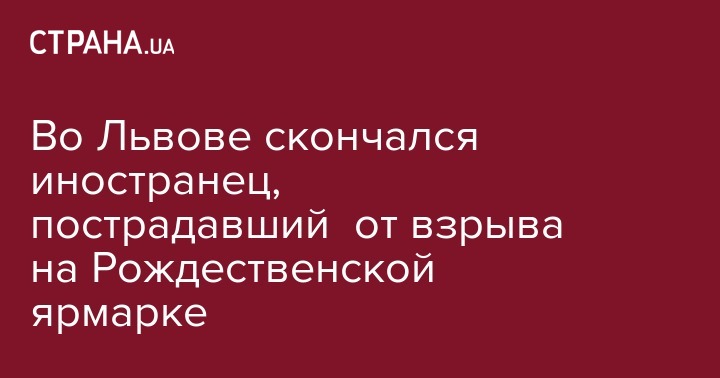 Во Львове скончался иностранец, пострадавший от взрыва на Рождественской ярмарке