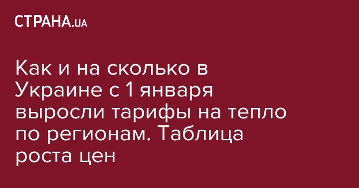 В 1 января 2019 года в Украине повысили тарифы на теплоэнергию для населения в ряде регионов Украины на 4-24%. Такое решение было принято на заседаниях Нацкомиссии, осуществляющей госрегулирование в сфере энергетики и коммунальных услуг (НКРЭКУ), пишет Интерфакс-Украина.