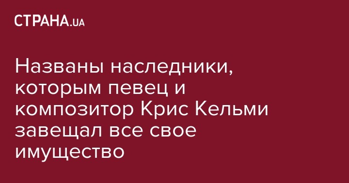 Названы наследники, которым певец и композитор Крис Кельми завещал все свое имущество