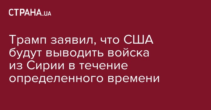 Трамп заявил, что США будут выводить войска из Сирии в течение определенного времени