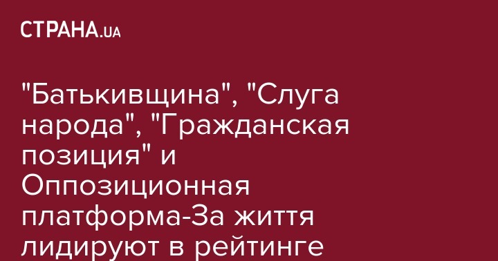 "Батькивщина", "Слуга народа", "Гражданская позиция" и Оппозиционная платформа-За життя лидируют в рейтинге партий, которые могут пройти в Раду