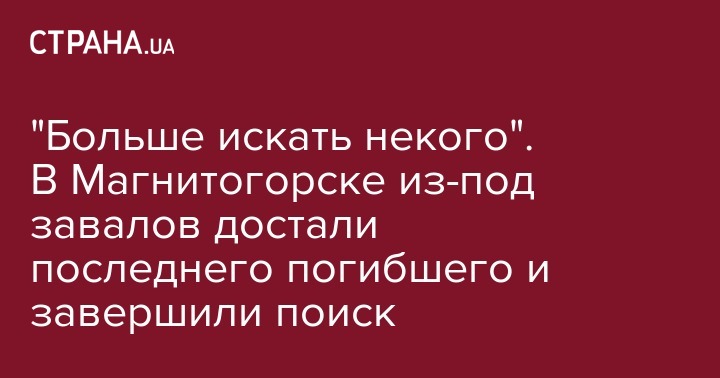 Из-под завалов взорвавшегося 31 декабря в российском Магнитогорске многоэтажного дома извлечены тела 39 погибших. После этого в МЧС России отрапортовали о завершении спасательной операции на месте взрыва. Об этом сообщает РИА "Новости".