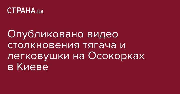 Опубликовано видео столкновения тягача и легковушки на Осокорках в Киеве
