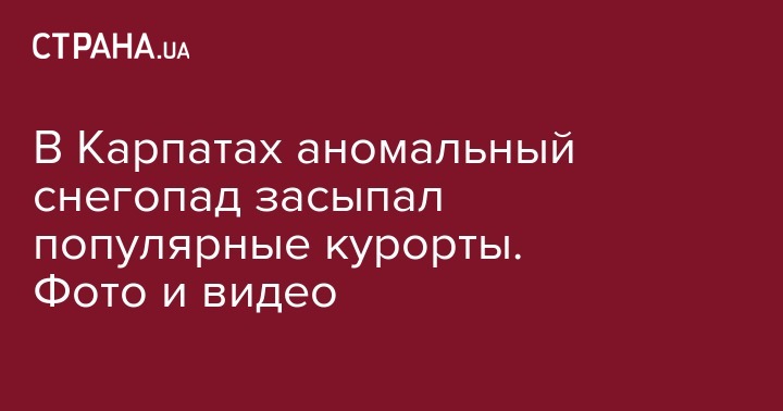 В украинских Карпатах выпало аномальное количество снега.  По состоянию на 3 января в высокогорье высота снежного покрова местами достигла 1,5 метра. Сообщается, что на станции Пожежевская высота снежного покрова составляет 36-100 сантиметров, а температура воздуха опустилась до -10,8 градуса мороза. Снег нестабилен, поэтому есть угроза схода лавин.
