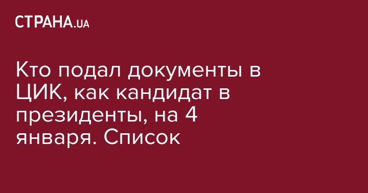 По состоянию на 4 января список подавших документы в ЦИК выглядит следующим образом: