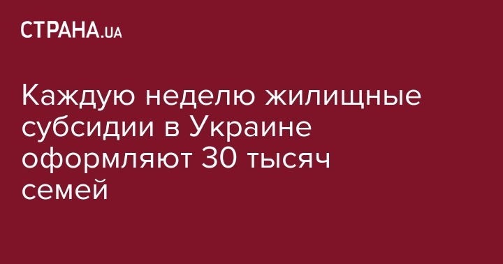 Директор департамента госсоцпомощи Минсоцполитики Виталий Музыченко заявил, что 30 тысяч семей еженедельно обращаются за оформлением жилищной субсидии. Такую цифру Музыченко назвал относительно небольшой, передает "Интерфакс Украина".