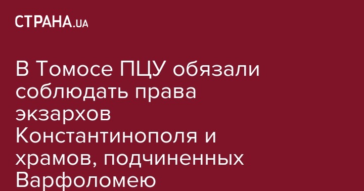 В Томосе ПЦУ обязали соблюдать права экзархов Константинополя и храмов, подчиненных Варфоломею