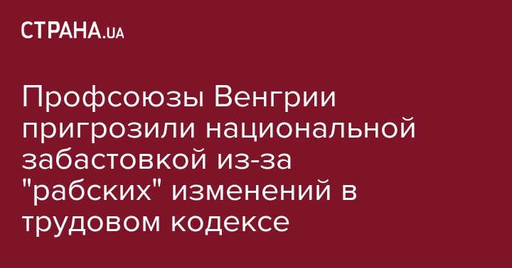 "Лидеры профсоюзов в Венгрии призывают к общенациональной забастовке и новым протестам 19 января, чтобы противостоять изменениям трудового кодекса, которые они считают "рабским законом", вредным для работников", - говорится в сообщении.