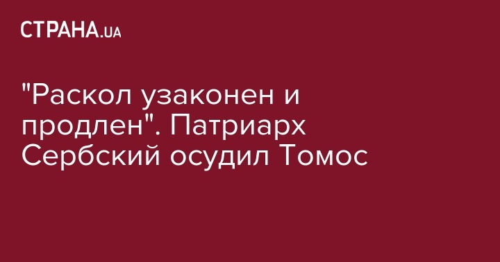 "Раскол узаконен и продлен". Патриарх Сербский осудил Томос