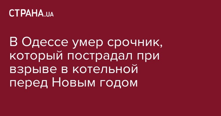 Сегодня, 6 января, в Одессе скончался 20-летний солдат срочной службы, который получил тяжелые травмы в котельной при разрыве котла в конце 2018 года. Об этом сообщает УНИАН.