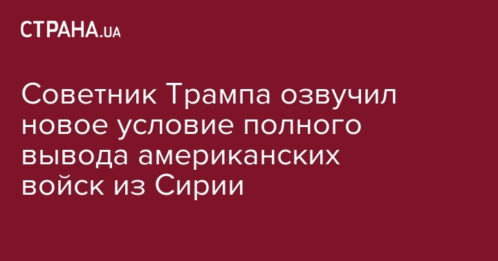 Советник Трампа озвучил новое условие полного вывода американских войск из Сирии