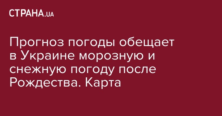 Прогноз погоды обещает в Украине морозную и снежную погоду после Рождества. Карта