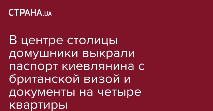 В центре столицы домушники выкрали паспорт киевлянина с британской визой и документы на четыре квартиры