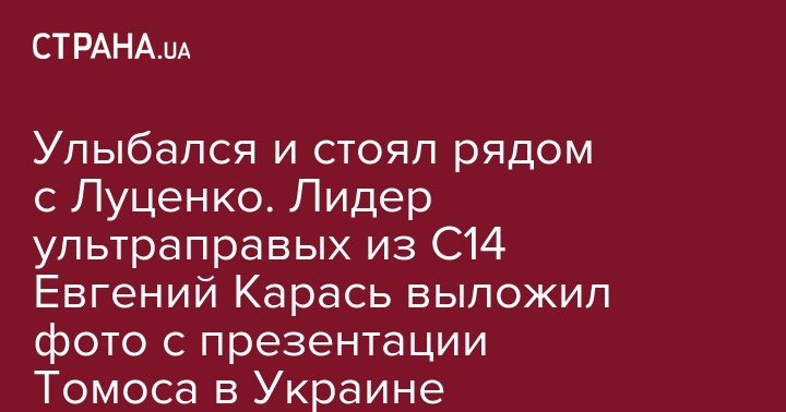 Улыбался и стоял рядом с Луценко. Лидер ультраправых из С14 Евгений Карась выложил фото с презентации Томоса в Украине