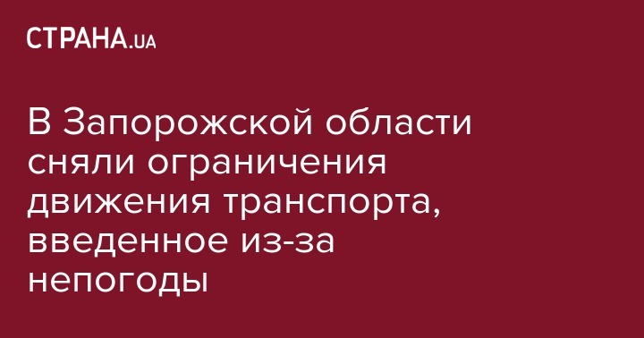 В Запорожской области сняли ограничения движения транспорта, введенное из-за непогоды
