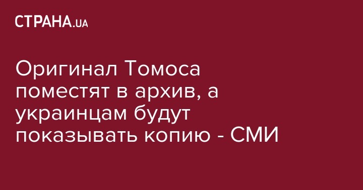 Оригинал Томоса поместят в архив, а украинцам будут показывать копию - СМИ