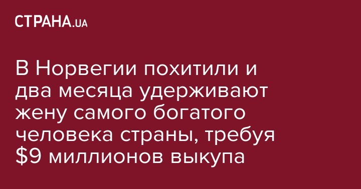 В Норвегии похитили и два месяца удерживают жену самого богатого человека страны, требуя $9 миллионов выкупа