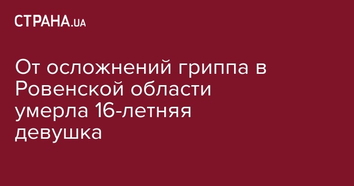 В Ровенской области от гриппа умерла 16-летняя девушка. Об этом сообщает государственное учреждение "Ровенский областной лабораторный центр Министерства здравоохранения Украины" на Фейсбук-странице в среду, 9 января.