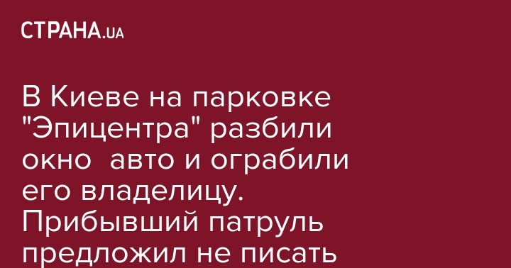В Киеве в среду, 9 января, неизвестные напали на автомобиль, который выезжал с парковки у "Эпицентра" на Кольцевой дороге, 1Б. Об этом на своей странице в Facebook сообщила пострадавшая в инциденте Ольга Семенова.