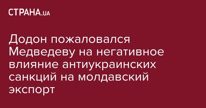 Президент Молдовы Игорь Додон обратился к премьер-министру РФ Дмитрию Медведеву с просьбой разобраться с транспортировкой в Россию молдавской продукции, которая была заблокирована из-за введенных против Украины санкций. Об этом Додон написал в письме, которое опубликовал в своем микроблоге в Twitter.