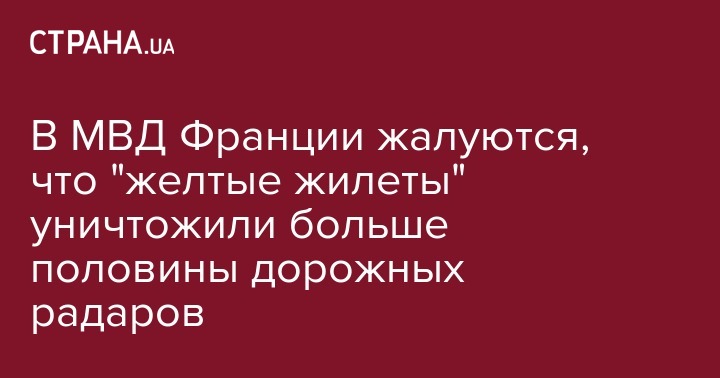 "Почти 60% дорожных радаров сейчас неисправны или полностью уничтожены теми, кто говорит о своей принадлежности к движению "желтых жилетов". В соцсетях я видел фото, на котором какие-то дураки позировали рядом с горящим радаром. Я бы не пожелал им столкнуться с реальностью смерти на дороге", - сообщил Кастанер.