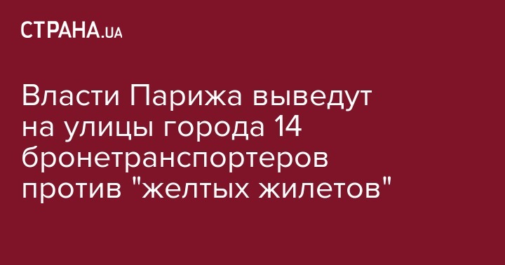 В субботу, 12 января, полиция Парижа ожидает проведения многочисленных акций протеста "желтых жилетов". В связи с этим на улицы французской столицы будут выведены 14 бронетранспортеров. Об этом в эфире телеканала CNews заявил начальник полиции Парижа Мишель Дельпеш, передает ТАСС.