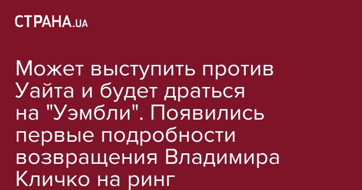 Бывший чемпион мира по боксу Владимир Кличко, слухи о возобновлении карьеры которого появились в конце 2018 года, может выступить на "Уэмбли" уже в 2019 году. Об этом со ссылкой на TalkSport пишет "Газета.ру".
