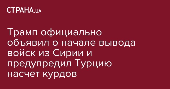 Трамп официально объявил о начале вывода войск из Сирии и предупредил Турцию насчет курдов