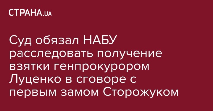 Суд обязал НАБУ расследовать получение взятки генпрокурором Луценко в сговоре с первым замом Сторожуком