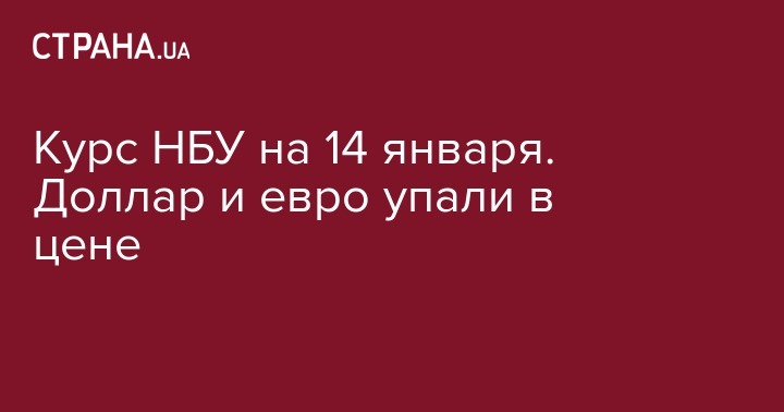 Курс НБУ на 14 января. Доллар и евро упали в цене