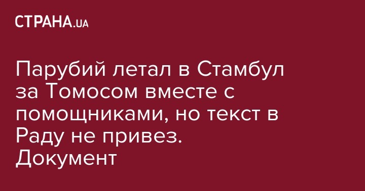 В аппарате Верховной Рады Украины не владеют информацией о тексте Томоса, для получения которого спикер Верховной Рады Андрей Парубий ездил вместе с тремя помощниками в Стамбул. Об этом сообщают "Украинские новости".