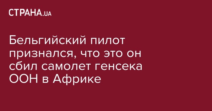 Бельгийский пилот признался, что это он сбил самолет генсека ООН в Африке