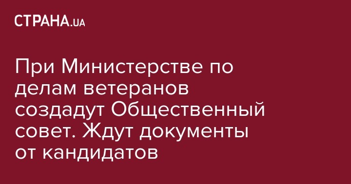 "С целью широкого привлечения общественности к работе Министерства по делам ветеранов, на старте его создания, принято решение о создании Общественного совета. Кандидатами в состав общественного совета могут быть делегированы от институтов гражданского общества, работающих в сфере ветеранских дел. Состав Общественного совета избирается путем интернет голосования за делегированных кандидатов граждан, проживающих на территории Украины. Максимальный состав Общественного совета 35 человек", - говорится в сообщении.