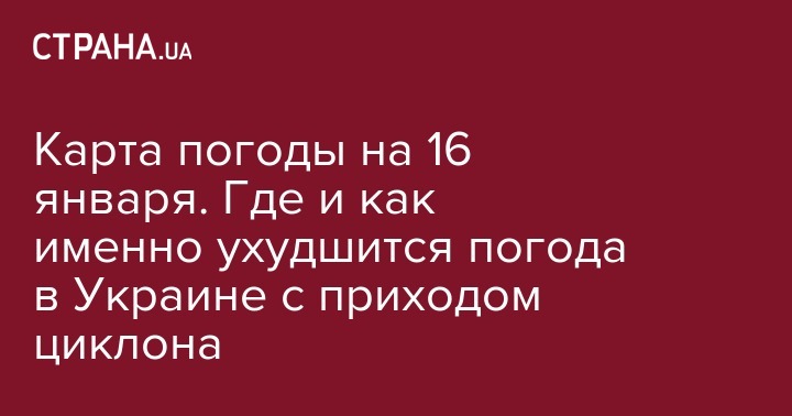 Карта погоды на 16 января. Где и как именно ухудшится погода в Украине с приходом циклона