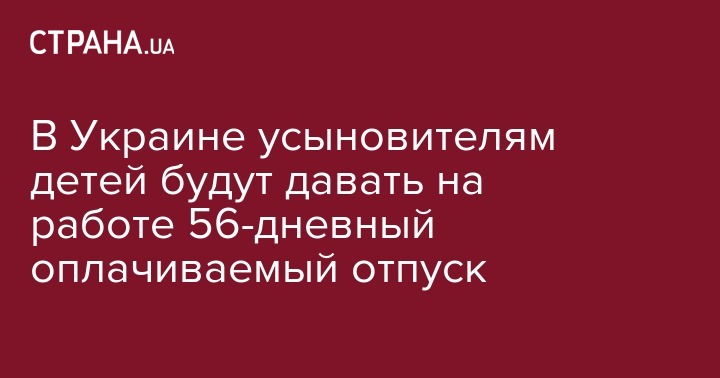 Соответствующий правительственный законопроект № 6350 относительно предоставления отпуска при усыновлении сироты, ребенка, лишенного родительской опеки был принят за основу на утреннем заседании Рады 15 января.