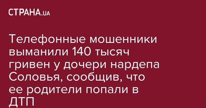 Пятнадцатилетняя дочка народного депутата от БПП Юрия Соловья стала жертвой телефонных аферистов. Об этом пишет издание Zaxid.net.