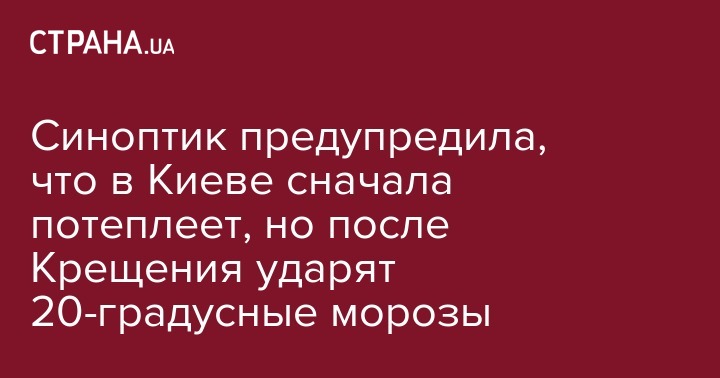 По словам Диденко, именно на Крещение в Украине заходит похолодание. Сначала оно будет в лайт-варианте -ночью -5...-10 градусов мороза, а днем ​​-2...-6 градусов. А ближе ко второй половине следующей недели, особенно 23, 24 и 25 января, температура в Киеве может опуститься до -15...-20 градусов.