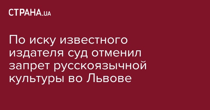 Львовский административный суд отменил мораторий на русскоязычный культурный продукт, введенный скандальным решением сессии Львовского облсовета N 745 от 18 сентября 2018 года. Об этом сообщил известный львовский издатель, основатель газеты "Галицкие Контакты" Сергей Иванов-Малявин.