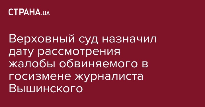 Верховный суд назначил дату рассмотрения жалобы обвиняемого в госизмене журналиста Вышинского