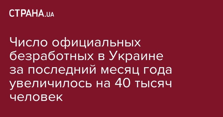 Число официальных безработных в Украине за последний месяц года увеличилось на 40 тысяч человек