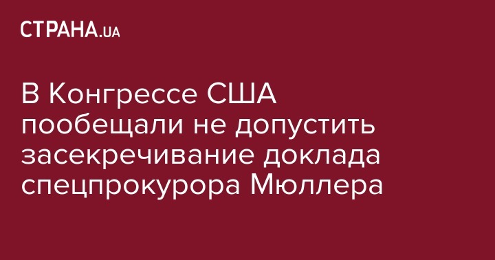 В Конгрессе США пообещали не допустить засекречивание доклада спецпрокурора Мюллера