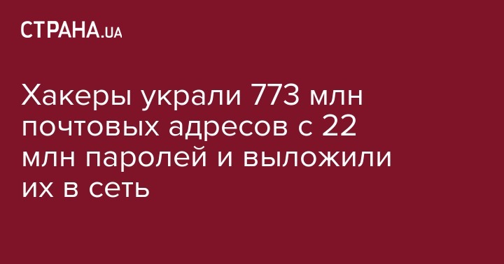 В интернете появилась база данных с почти 773 млн уникальных адресов электронной почты и почти 22 млн паролей. Об этом сообщил эксперт в области компьютерной безопасности Трой Хант на своем сайте.