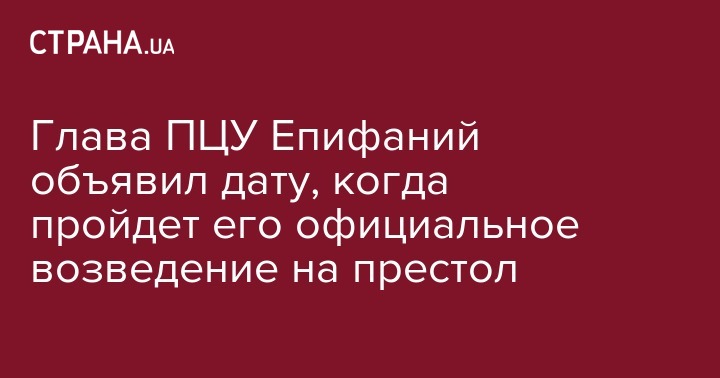Глава Православной церкви Украины (ПЦУ) Епифаний официально объявил, что дата его интронизации  (торжественного возведения на престол как главы православной церкви) назначена на 3 февраля.