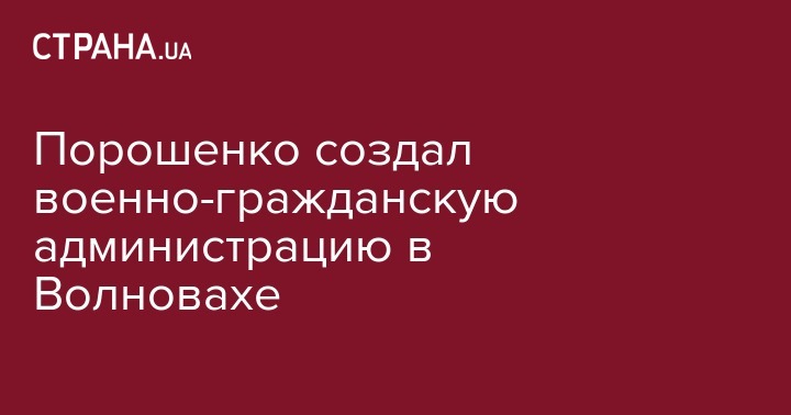 Президент Петр Порошенко распорядился создать военно-гражданскую администрацию (ВГА) города Волноваха Волновахского района Донецкой области. Об этом говорится в указе №12/2019, подписанном 17 января.