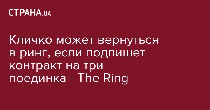 В истории с возможным возвращением на большой ринг украинского боксера Владимира Кличко появился новый поворот. Он может подписать контракт на проведение трех поединков. Об этом передает портал The Ring.