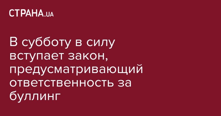 Закон о противодействии буллингу № 2657-VIII опубликован в парламентском издании "Голос Украины". Завтра он вступит в силу.