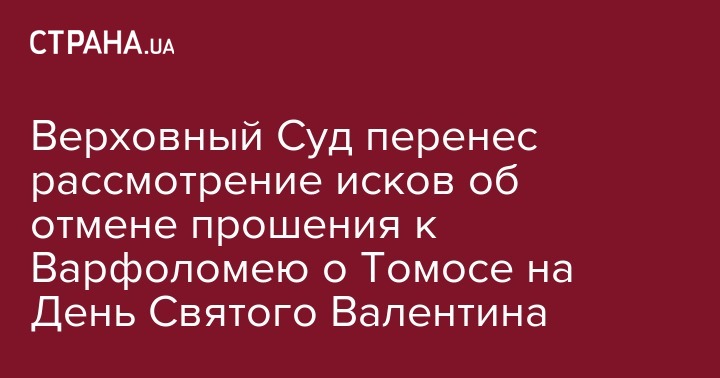Верховный Суд перенес рассмотрение исков об отмене прошения к Варфоломею о Томосе на День Святого Валентина