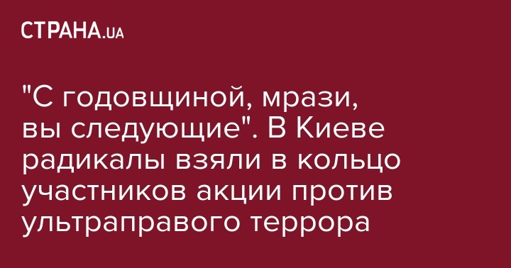 "С годовщиной, мрази, вы следующие". В Киеве радикалы взяли в кольцо участников акции против ультраправого террора