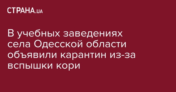 В селе Шевченково под Одессой с понедельника, 21 января, введен карантин во всех учебных заведениях из-за вспышки кори. Об этом сообщает глава Килийской объединенной территориальной громады Павел Бойченко на своей странице в Facebook.